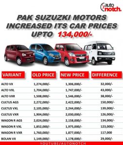 پاک سوزوکی کی گاڑیوں کی قیمتوں میں ایک لاکھ 34 ہزار روپے کا اضافہ کر دیا گیا