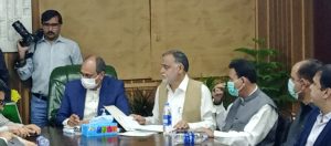 وزیر اعلی سندھ کے معاون خصوصی اقبال ساند، ایڈمنسٹریٹر بلدیہ شرقی رحمت اللہ شیخ کے ہمراہ اجلاس کی صدارت