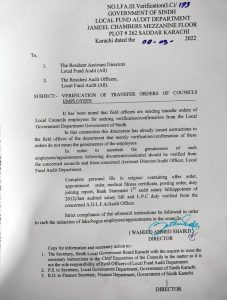 ڈائریکٹر لوکل فنڈ آڈٹ سندھ کے آڈٹ افسران کو خط