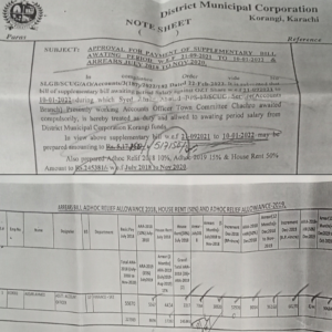 دیگر ملازمین میں شدید غم وغصہ پایا جاتا ہے سال 2018-19 کی اضافی تنخواہوں کے بقایا جات سے ملازمین تاحال محروم ہیں جس پر ایڈمنسٹریٹر بلدیہ کورنگی نے متعلقہ محکمہ جات کو خطوط بھی ارسال کر رکھے ہیں لیکن چیف اکاؤنٹ افسر اقبال شاہ،اور انچارج پے رول شجاعت نے دیگر ملازمین کا غصہ بڑھاتے ہوئے سابق جعلی بھرتیوں کے ماسٹر مائنڈ افسر ابصار عالم کے بقایا جات دلوانے کیلئے مصروف ہیں ملازمین کا کہنا ہے کہ جب دیگر ملازمین کو بقایا جات ادا نہیں ہوئے ہیں تو چیف اکاؤنٹ افسر کو کسی اور کو بقایا جات دلوانے کا کوئی حق نہیں پہنچتا جب ایک افسر وہ بھی سابق افسر کو بقایا جات ادا کئے گئے تو اقبال شاہ کیخلاف عدالت سے رجوع کرینگے جو دیگر ملازمین کے حقوق پامال کر کے اپنی خواہشوں کی تکمیل کیلئے کوشاں ہیں بلدیہ کورنگی کے ملازمین نے ایڈمنسٹریٹر بلدیہ کورنگی جاویدالرحمن کلوڑ سے گزارش کی ہے کہ وہ بقایا جات کی کسی فائل پر دستخط نہ کریں بقایا جات کی ادائیگی ہو تو سارے ملازمین کی ہو کسی فرد واحد کو بقایا جات ملے تو ہم ملازمین احتجاج اور قانونی کاروائی کا حق رکھتے ہیں.