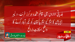 ایم کیو ایم پاکستان کی لیبر ڈیویژن کے عہدیداران کا ایم کیو ایم پاکستان سے جلد لاتعلقی کا فیصلہ ستمبر 20, 2022September 20, 2022 0 تبصرے 1013 مناظر