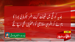 بلدیہ کورنگی محکمہ فنانس کے افسر سیکریٹری بورڈ کا نام لے کر افسران وملازمین کو ہراساں کرنے لگے ستمبر 25, 2022September 25, 2022 0 تبصرے 360 مناظر