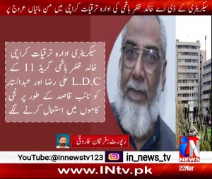 اداری ترقیات کراچی میں تعینات سیکرٹری خالد ظفر ہاشمی کی من مانیاں عروج پر پہنچ گئی