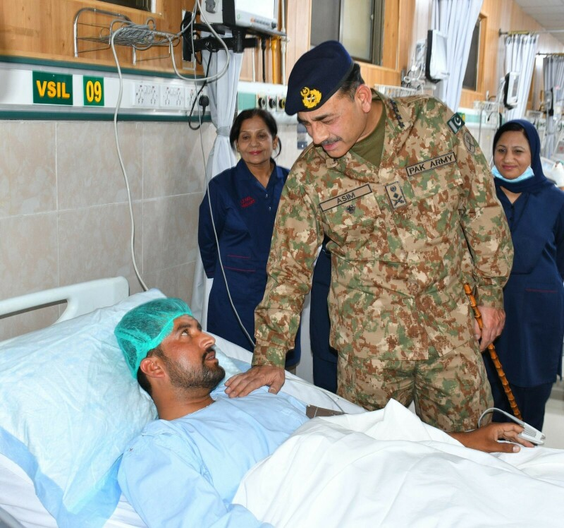 آئی ایس پی آر کے مطابق آرمی چیف نے سی ایم ایچ کوئٹہ میں زخمی فوجیوں کی عیادت کی، قوم کے لیے ان کی خدمات کو سراہا اور ان کے عزم کو سراہا۔